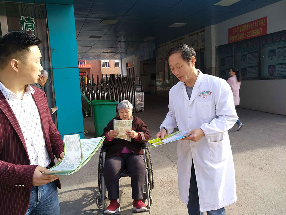 李郢孜醫院的院領導班子也在早上7:00就來到了康寶藥房門口發傳單做宣傳,義診的醫務人員也是早早的就來到現場做準備工作。